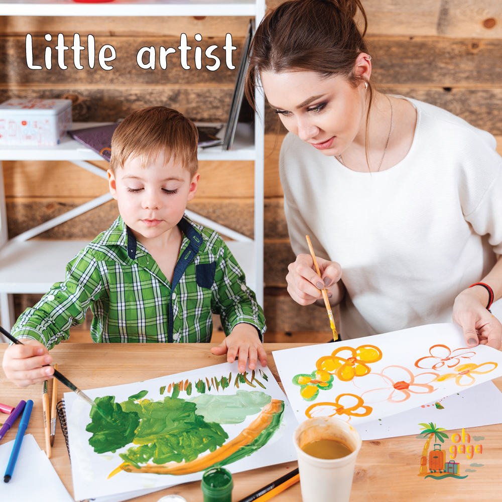 "Before we paint, we need to mix the colors with water, okay?" (ก่อนที่เราจะวาดรูป เราต้องผสมสีกับน้ำก่อนนะ...