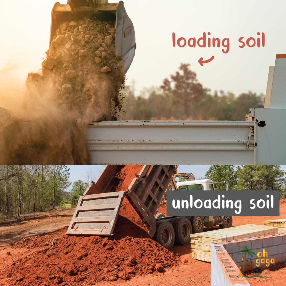 "Look at that truck! What do you think it's carrying?" (ดูรถบรรทุกคันนั้นสิ! หนูคิดว่ามันบรรทุกอะไรอยู่?)