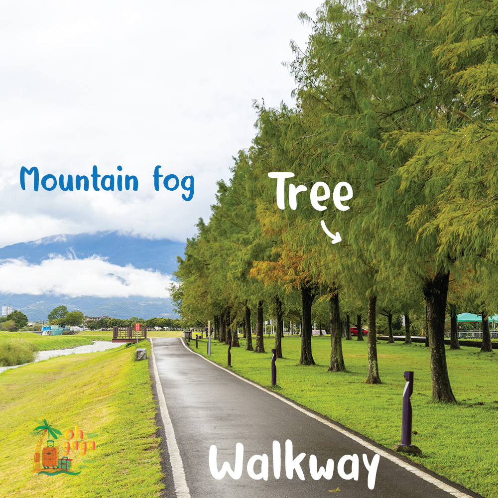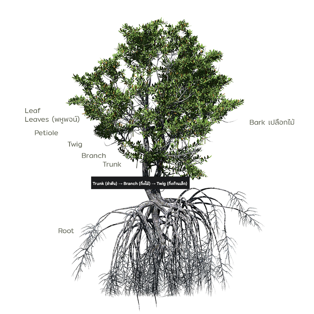 "Look, honey! The trees are standing in a line. They're all in a row, just like your toy cars!" (ดูสิลูก! ต้นไม้พวกนั้นยืนเรียงกันเป็นแถว เหมือนรถของเล่นของหนูเลย!)