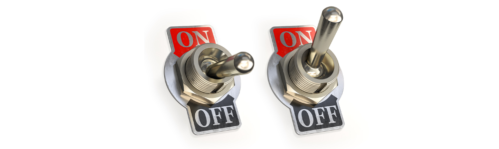สวิตช์แบบกดเปิดกดปิด (Two-way switch): เปิด “Turn on” และ ปิด “Turn off“